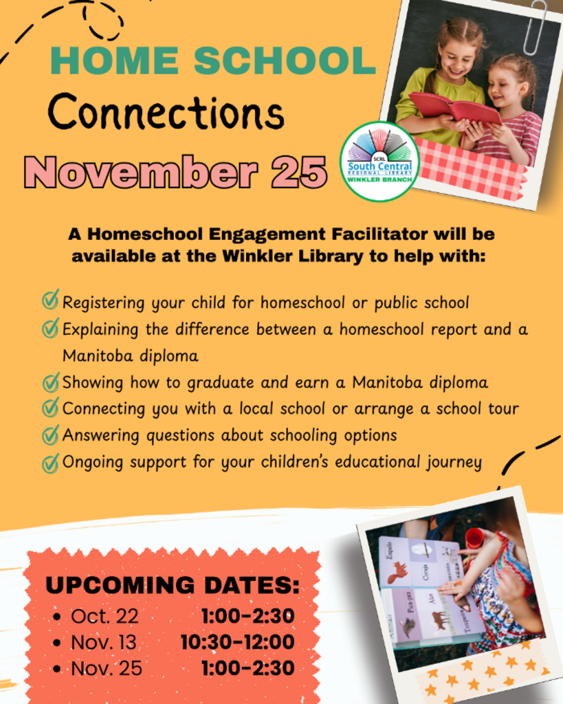 A Homeschool Engagement Facilitator will be available at the Winkler Library to help with: