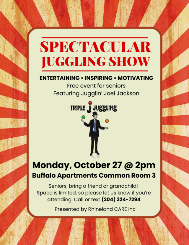 Space is limited, so please let us know if you're attending! Call or text (204) 324-7294.