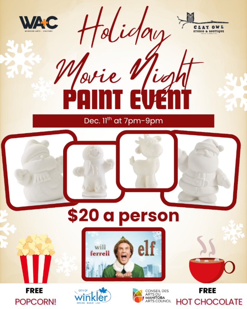 Join us for a Holiday Movie Night Paint Event on Dec. 11th, 7–9pm, featuring Elf!!!