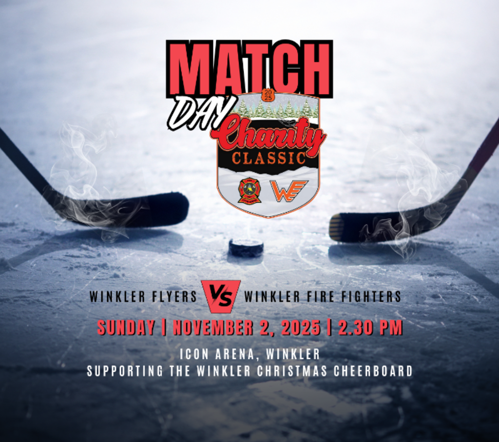 Once again, in the spirit of Christmas, the Winkler Fire Fighters will take on the Winkler Flyers in an entertaining game of hockey on Sunday, November 2 at 2:30 at the Meridian Exhibition Centre (Icon Arena). Come early to see the fire trucks, meet the firefighters, and the team.