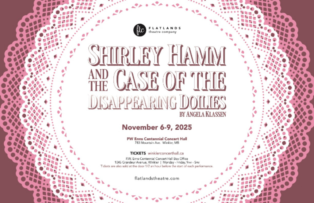 Flatlands Theatre Company presents Shirley Hamm and the Case of the Disappearing Doilies, November 6-9 at the PW Enns Centennial Concert Hall.