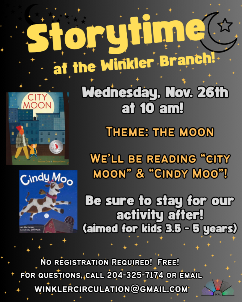 Blast off to our Moon-themed Storytime on November 26th at 10AM! We're diving into "City Moon" and "Cindy Moo" for a lunar adventure. No RSVP needed—just drop in and stick around for the post-story fun, perfect for kiddos aged 3.5 to 5! Please note the stories that have been selected are subject to change.