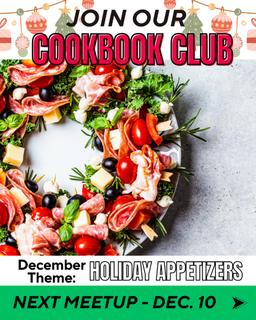 You may be dreaming of a white Christmas, but we're dreaming of our Cookbook Club's Holiday Appetizer Night on December 10th at 6:30PM!