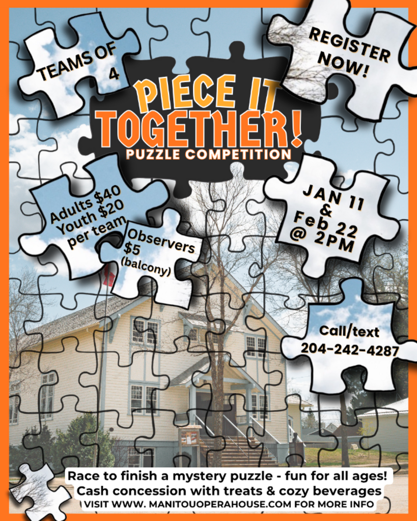 Put your puzzling skills to the test!Gather your team of four and join us for a fun and friendly puzzle competition at the Manitou Opera House. Teams will compete to complete a mystery puzzle the fastest — starting with a warm-up round featuring an easier puzzle to get those brains working!