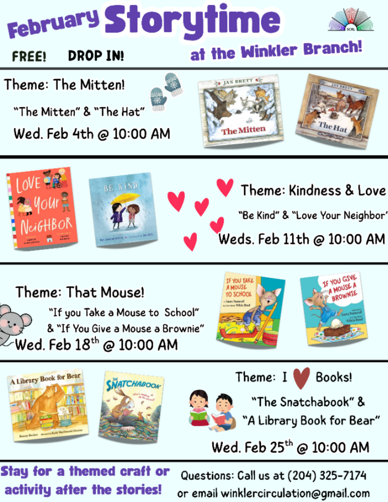 Join us every Wednesday morning at 10:00 AM for Storytime! Each week, we will read new stories and have a fun craft/activity planned for after (3.5 - 5 years old level)!