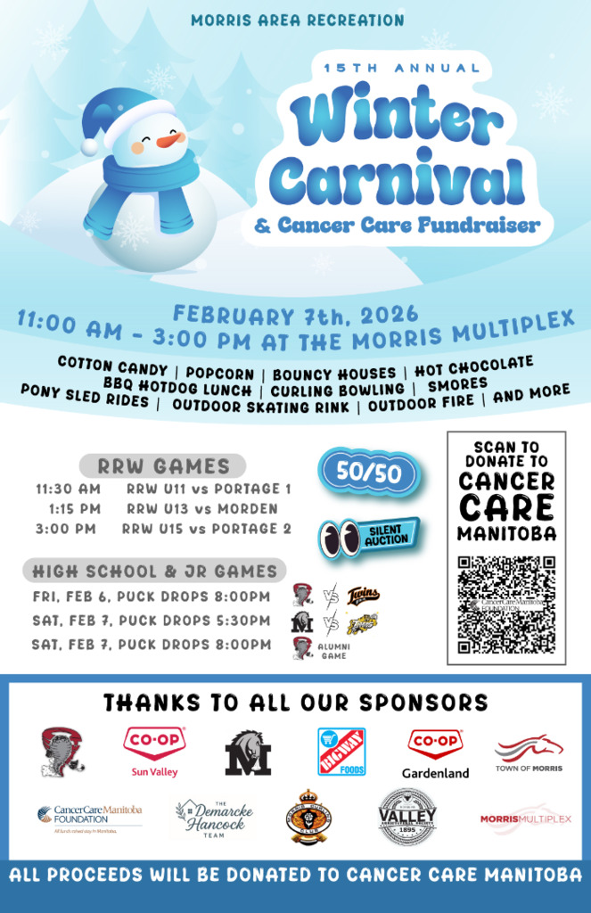 ❄️☃️ Join us Saturday, February 7th, 2026 | 11:00 AM – 3:00 PM at the Morris Multiplex for the 15th Annual Winter Carnival & Cancer Care Fundraiser! ☃️❄️