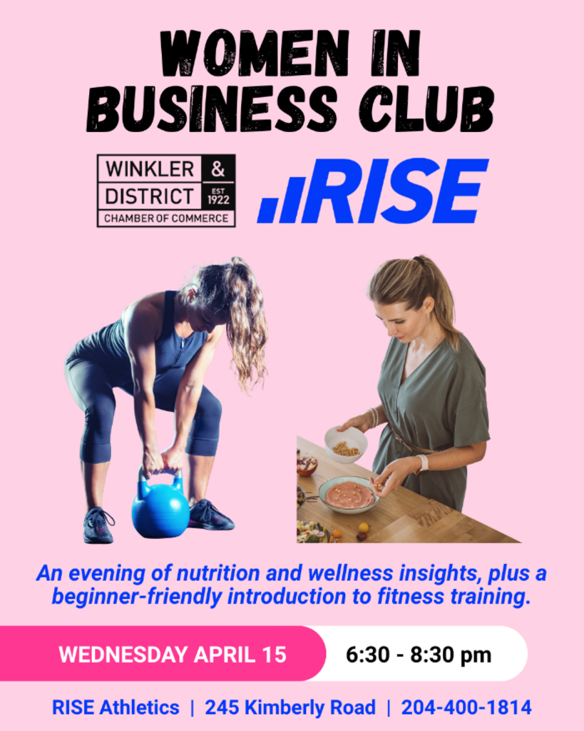 The Women in Business Club, hosted by Winkler & District Chamber of Commerce in collaboration with RISE, is bringing you an evening of wellness, nutrition, and approachable fitness.