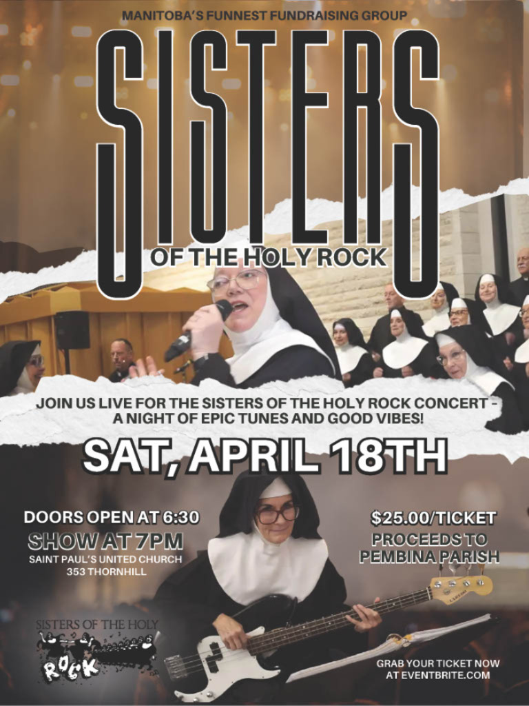 Join us for great music and good vibes! Sisters of the Holy Rock will be kicking it up at St. Paul's United Church on Tuesday April 18th at 7pm.