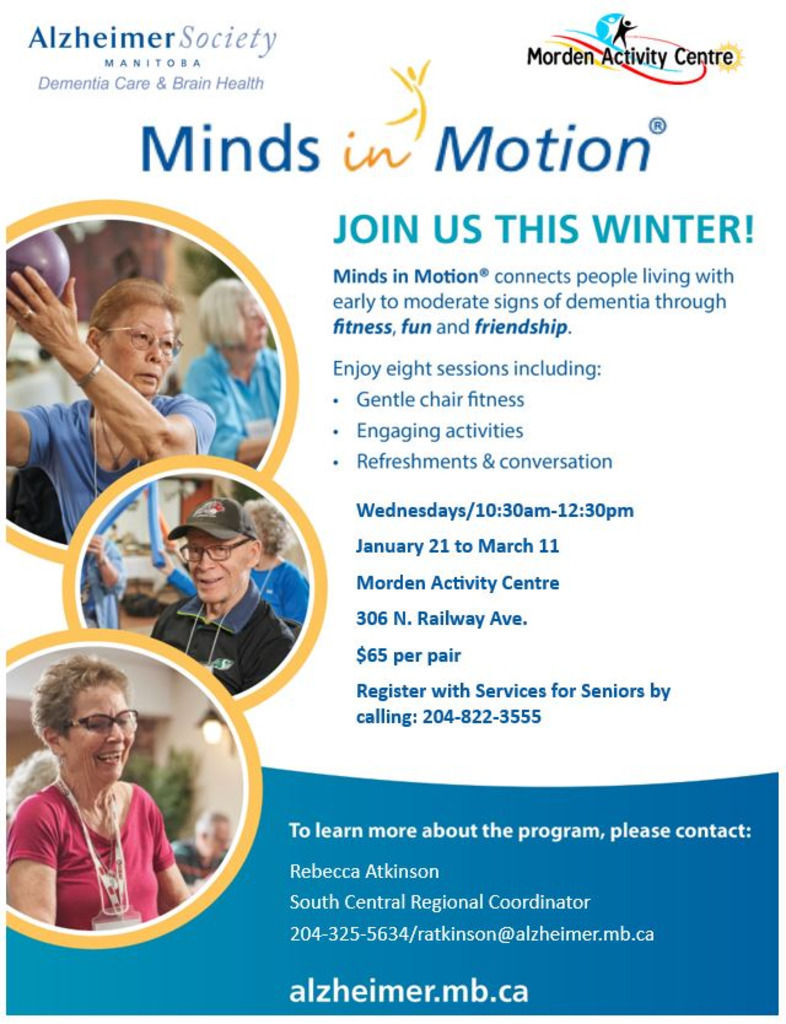 Minds in Motion connects people living with early to moderate signs of dementia through fitness, fun, and friendship. Includes:
