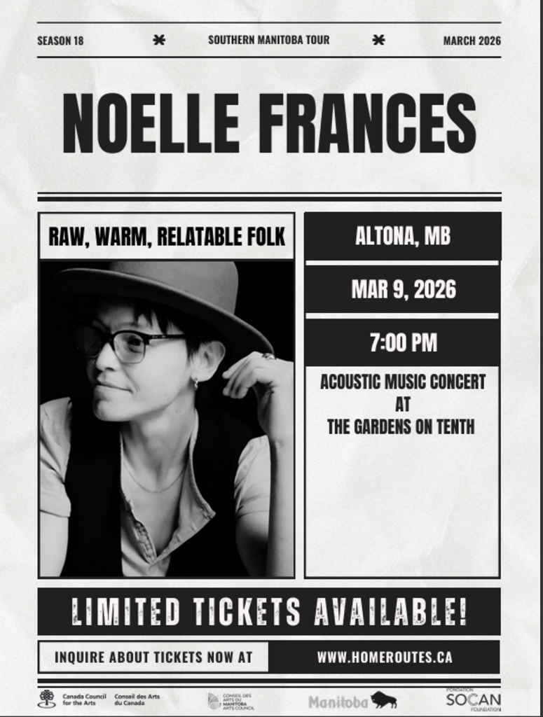 Join us on March 9th, 2026, at 7:00 PM at The Gardens on Tenth for an unforgettable evening with Noelle Frances.
