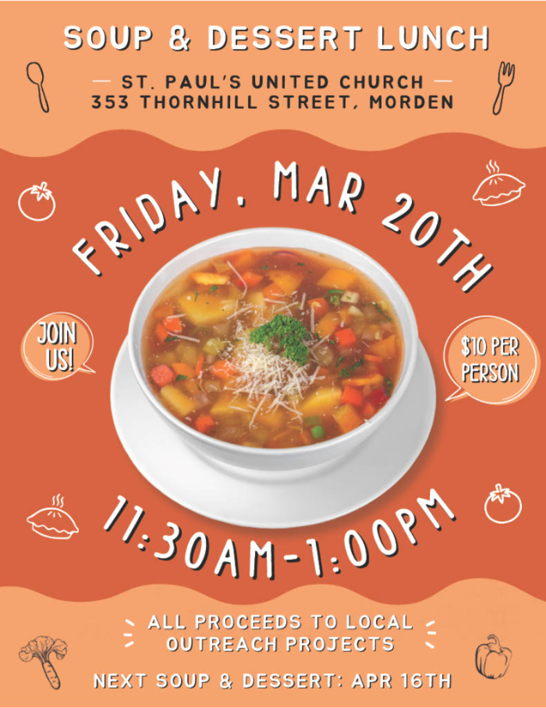 Choice of Homemade soups, buns, biscuits, and desserts.