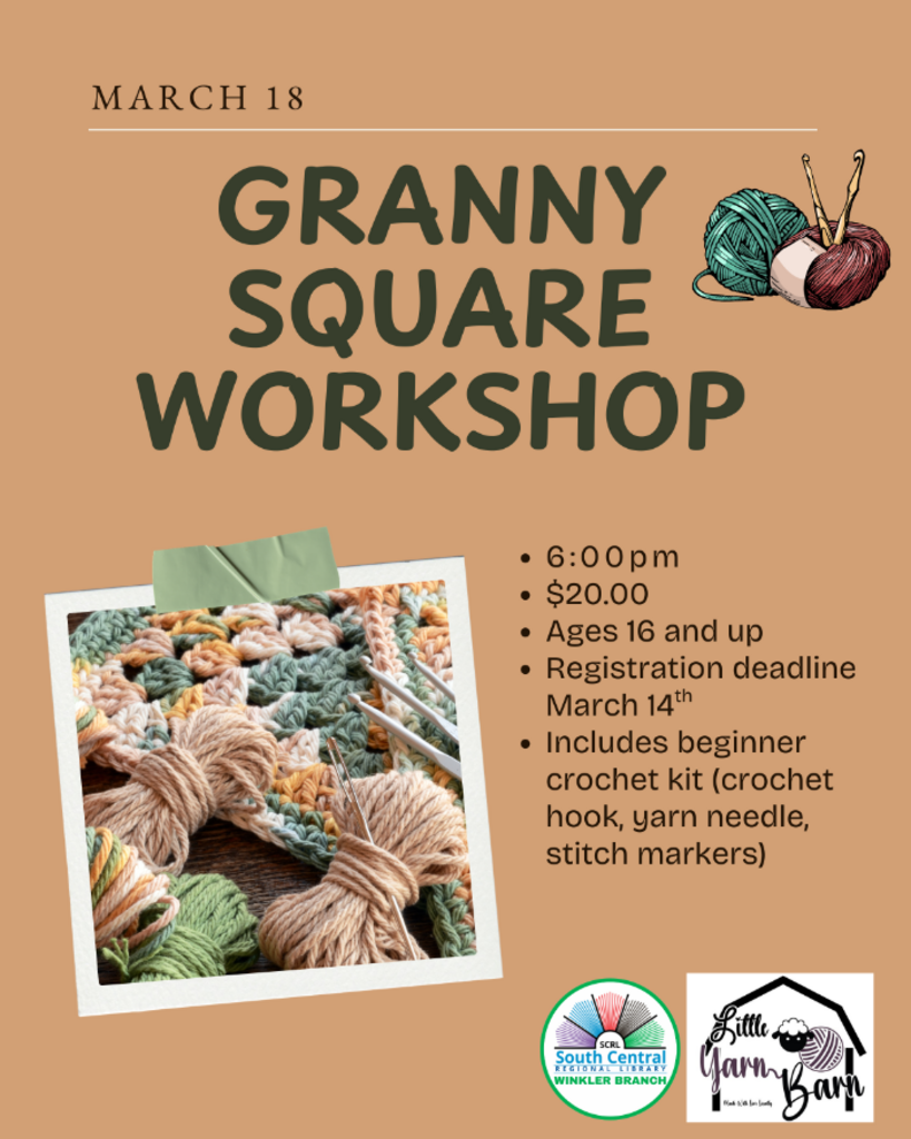 Join us on March 18th at 6:00 PM for an evening of crocheting!
