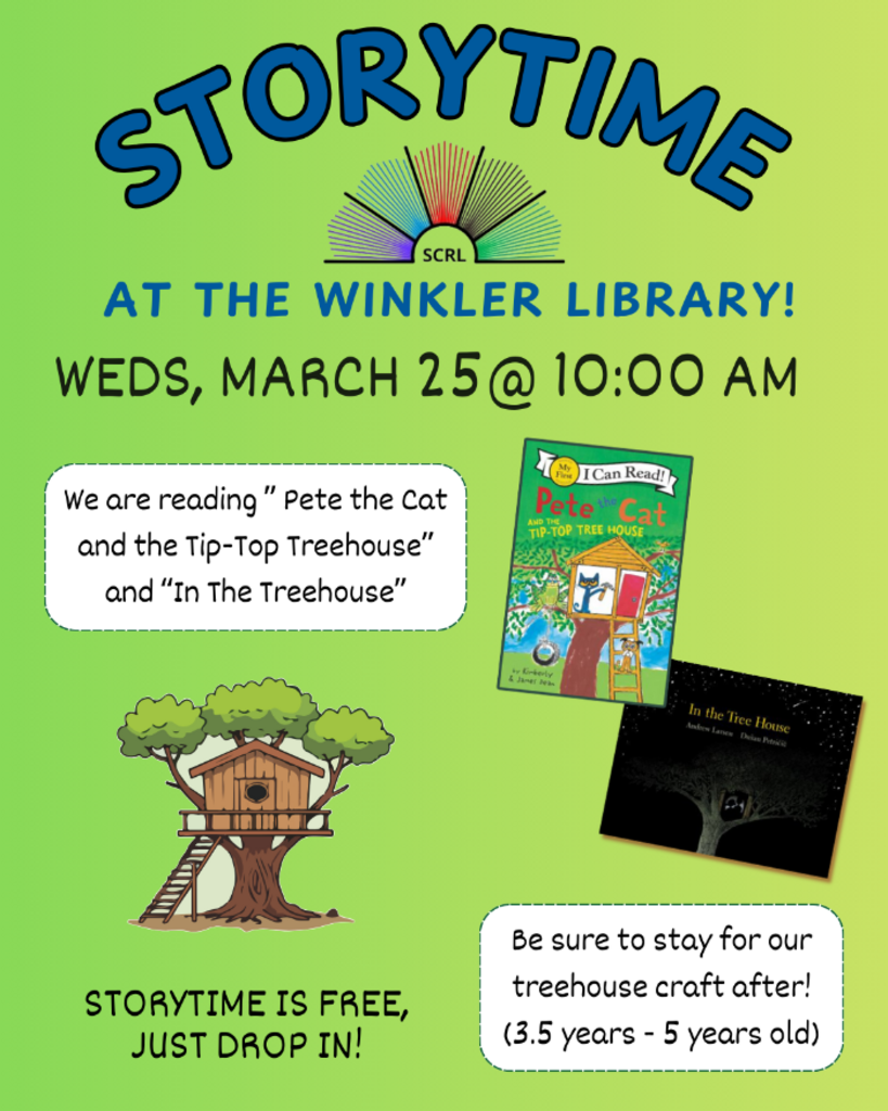 Join us every Wednesday morning at 10:00 AM for Storytime! Each week, we will read new stories and have a fun craft/activity planned for after (3.5 - 5 years old level)!