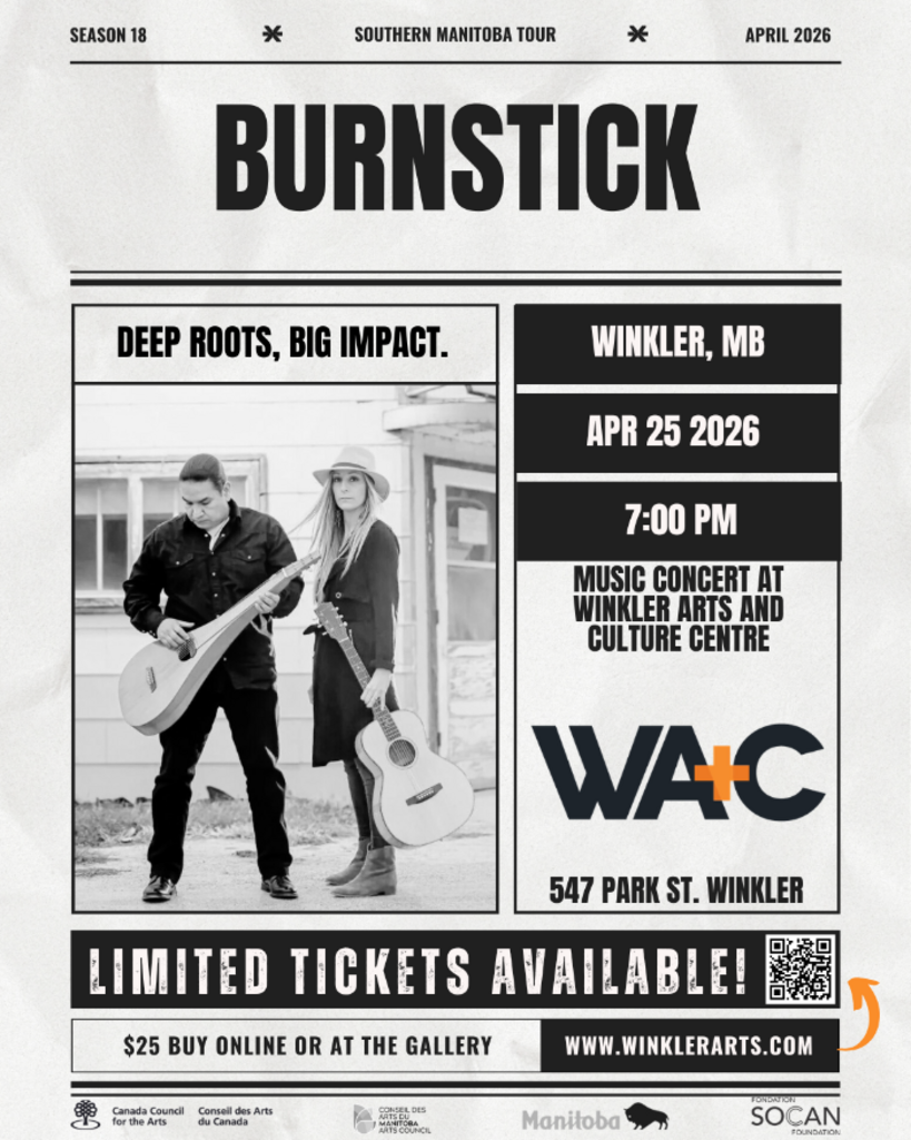 Drawing from a decade of life lived fully, as partners in both art and life, their music carries stories of love, loss, belonging, and the sacred ties that shape who we are. Guided by a fearless creative spirit and unafraid to push boundaries, Burnstick creates soul-stirring landscapes that challenge listeners to feel deeply and reflect inward.