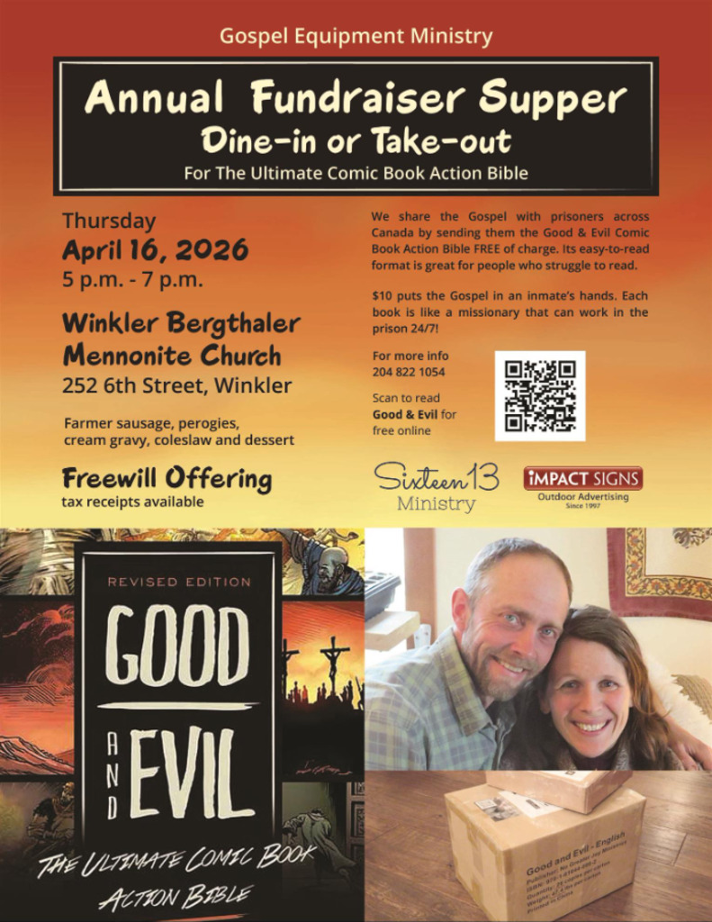 Our Annual Sausage and Perogy Fundraiser is next week Thursday (April 16th)! 5pm - 7pm at the Winkler Bergthaler Mennonite Church, 252 Sixth St, Winkler. Come out for a great meal and support our prison ministry. Tell your friends.